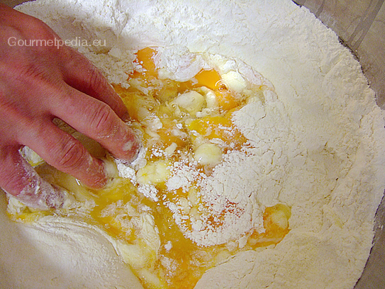 • Den Teig solange kneten bis sich ein mittelfester Teig bindet