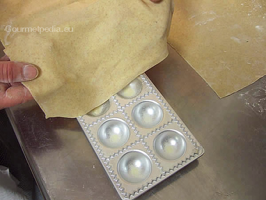 • Bis zum Kochen die Ravioli auf ein mit Hartweizenmehl bemehltes Backpapier legen und mit einem Tuch abdecken