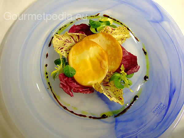 Räucherkäse gegrillt auf marinierten Salatbeet