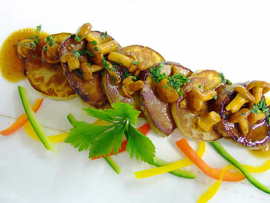 Rôti au filet de porc et pommes de terre à la sauce aux girolles