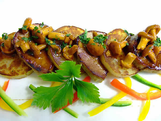 Gröstel von Schweinefilet mit Kartoffeln und Pfifferlingssauce