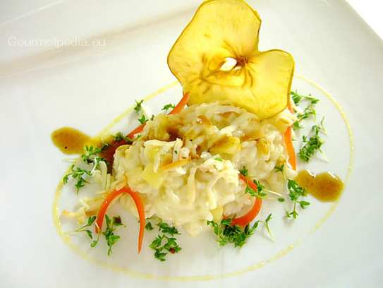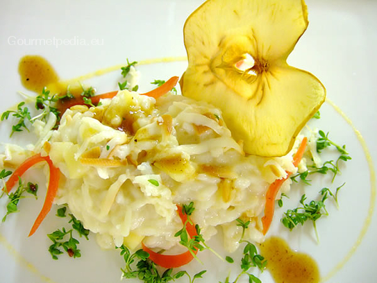 Risotto alle mele e formaggio affumicato con crescione del giardino