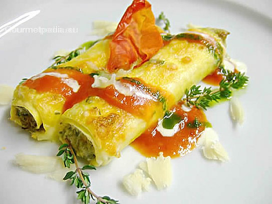 deCannelloni mit Fleischfüllung gratiniert und Tomatensauce