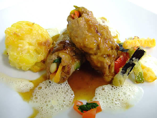 Kalbfleischröllchen gefüllt mit Gemüse und Mozzarella