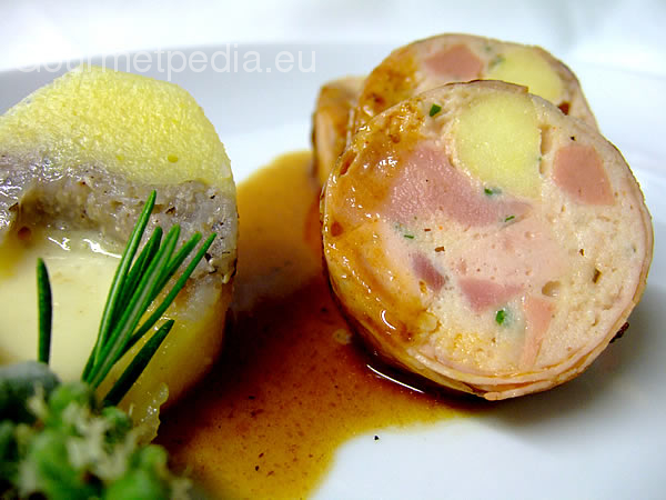 Rolle vom Milchferkel im Rohschinkenmantel an Polentatimbal
